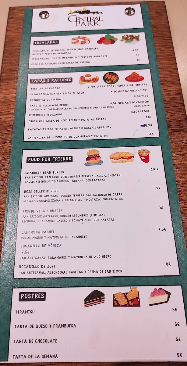 Welcome to Central Park - Rua Emilia Pardo Bazan, a charming coffee shop nestled in the heart of A Coruña. This neighborhood gem invites you to unwind with friends or family over a delightful beverage. The menu features a selection of tasty tapas, perfect for casual dining. While patrons rave about the friendly service and pleasant ambiance, some note that the food could use a little refinement, making it ideal for a quick bite rather than an elaborate meal.